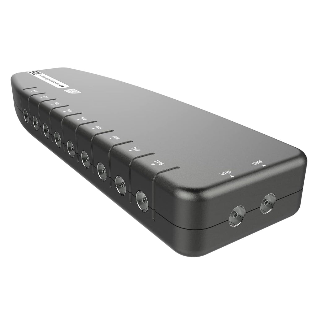 SLx TV Signal Booster Aerial Amplifier, 8 Way Signal Distribution Amplifier with Coax Connections, 4G & 5G Filtering, Indoor TV Aerial, HD & 4K TV/FM/DAB & Freeview, Variable Gain Control