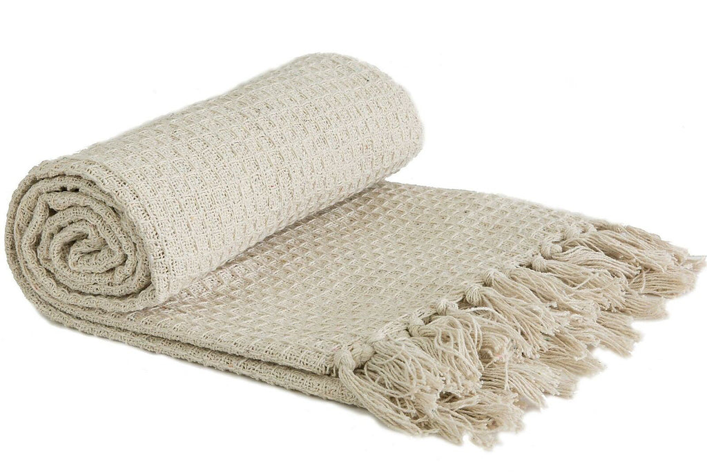 Emma Barclay Honeycomb - Recycled Cotton Plain Waffle Textured Chair Sofa Setee Throw Over Blanket in Ivory Cream - 90x100 (228x254cm)