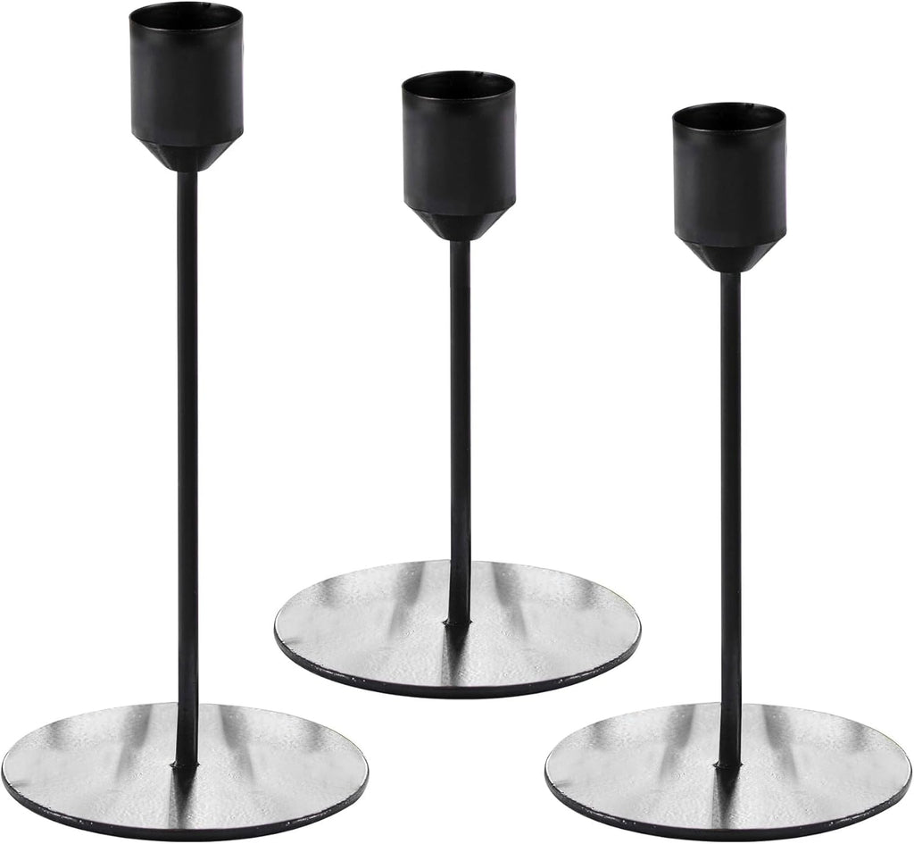 Ginger Ray Matte Black Candle Holders Pack of 3, 20cm, 15cm, 10cm