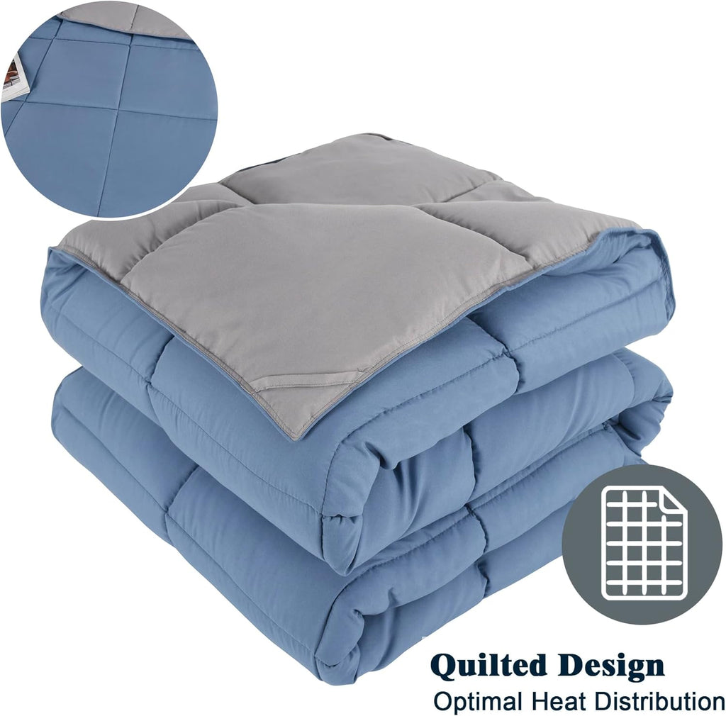HIG 2 Pieces Dusty Blue Coverless Duvet Single - 135 x 200cm - Baffle Box Design - 10.5 Tog Down Alternative Reversible Comforter Set with 1 Sham - Corner Duvet Tabs - Machine Washable, Warm, Soft