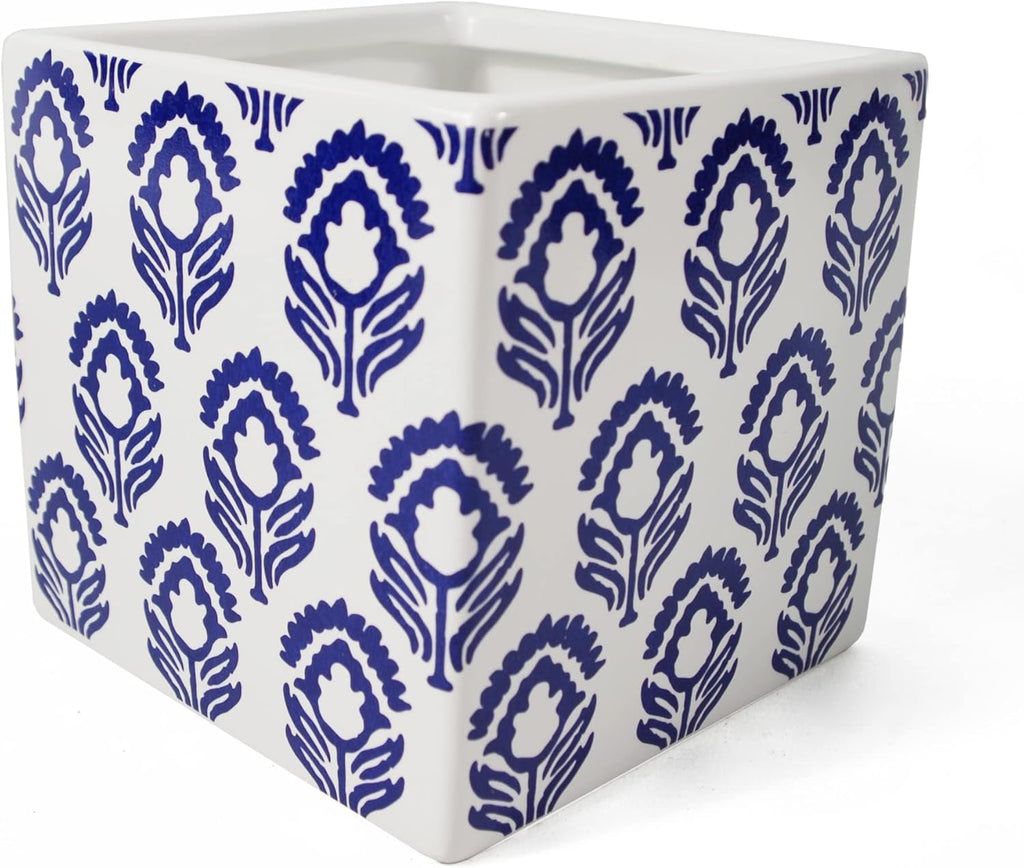 Leaf Ceramic Planters, Cube White Blue, 12cm