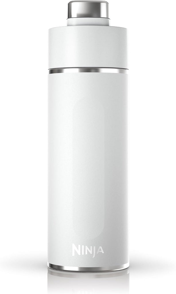 Ninja Thirsti Water Bottle and Flask 700 ML With Leak-Proof Lid, Designed For Carbonated, Hot & Cold Drinks, Ideal For Travel & Sports, Triple Insulated, Stainless Steel Bottle, White, DW2401EUUKWH