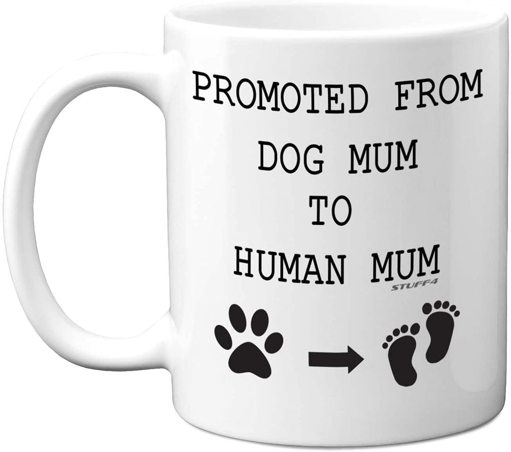 Stuff4 Promoted from Dog Mum to Human Mum Mug, 11oz Ceramic Dishwasher Safe Premium Mugs, Baby Shower Gifts for New Gifts, New Parents to be Present
