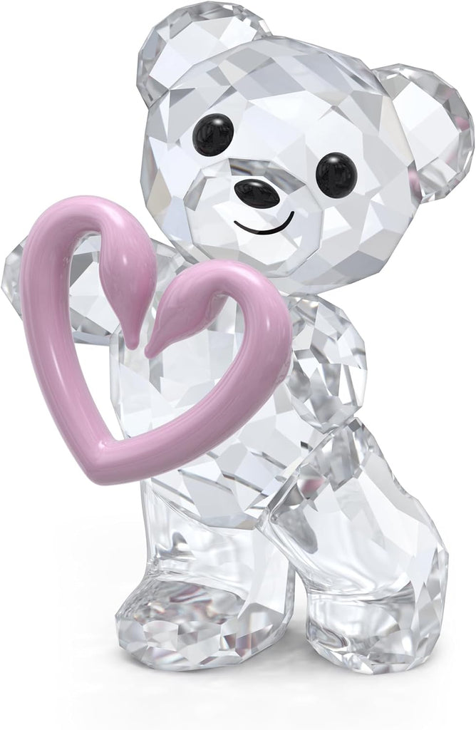 Swarovski Kris Bears Una Bear Crystal Figurine with White Crystals and Pink Heart Swan Motif, from the Swarovski Kris Bears Collection