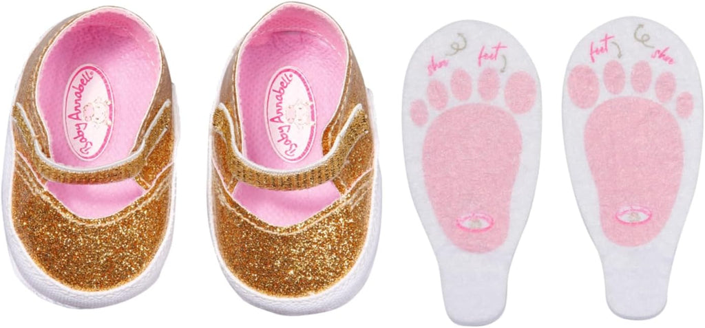 Baby Annabell Golden Shoes with Insoles 710272 - Golden Sparkly Shoes for 43cm Dolls - Suitable for Children from 3 Years Old