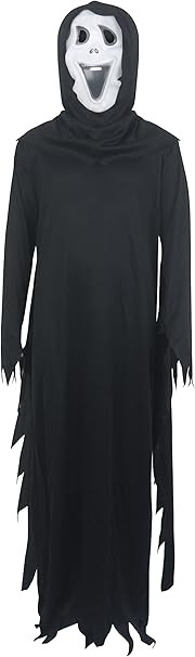 HENBRANDT Children’s Demon Ghost with Screaming Face Mask Fancy Dress Costume Kids Ghostly Black Robe Halloween Fancy Dress Outfit for Boys and Girls