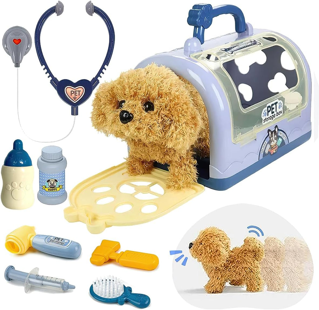 Koolbitz Interactive Pet Care Role Play Vet Set - 12PCS Vet Kit with Walking Barking Plush Puppy, Educational Gift for Age 3+ Kids