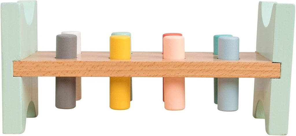 Owl & Fox Wooden Hammer Bench, Pretend and Play Pounding Bench with Hammer and Pegs, Developmental Montessori Play; For Boys & Girls 12 Months+
