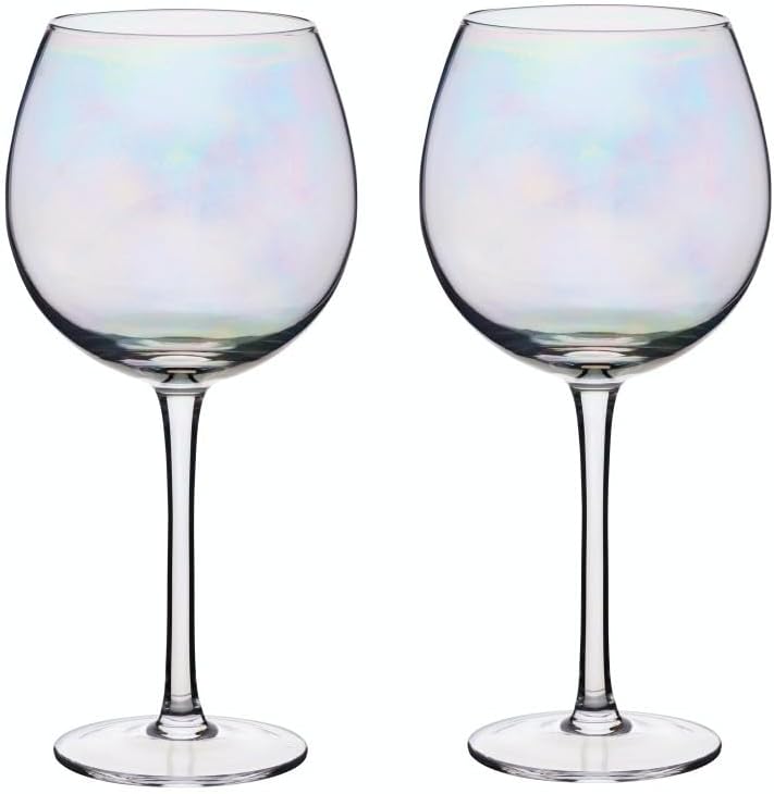 BarCraft Rainbow-Pearl Iridescent Gin Glasses, Set of 2 Balloon Glasses, 500ml, Gift Boxed