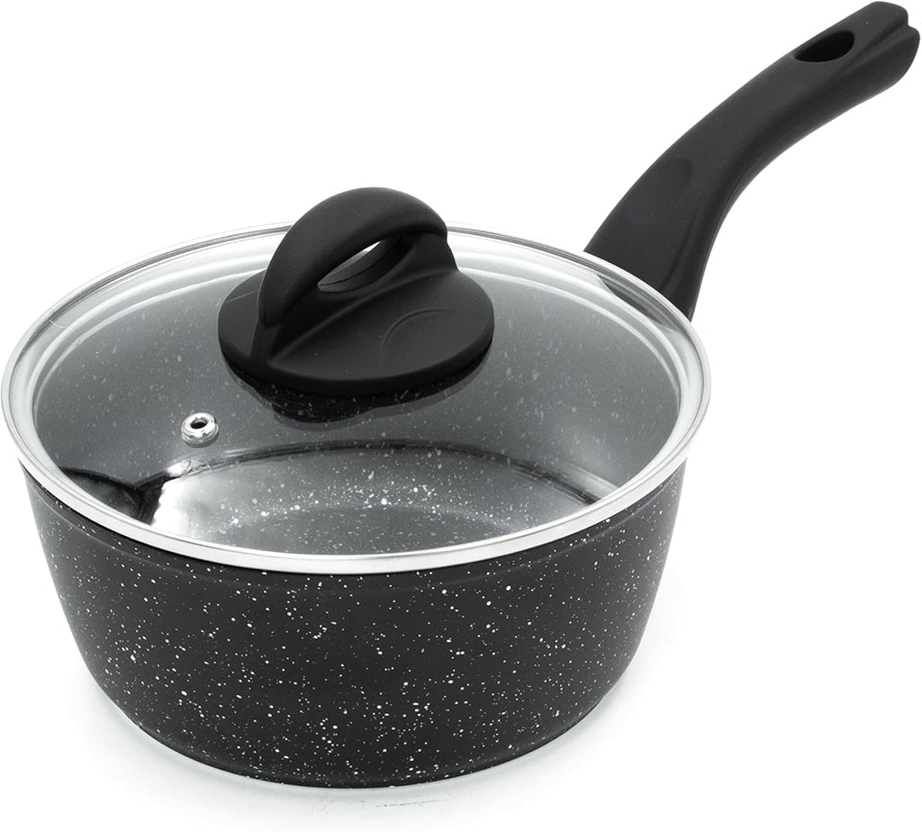 Blackmoor 65740 Classic 18cm Saucepan with Tempered Glass Lid/Non-Stick Coating/Cool Touch Handle/Suitable for Induction, Gas & Electric Hobs/Black Colour