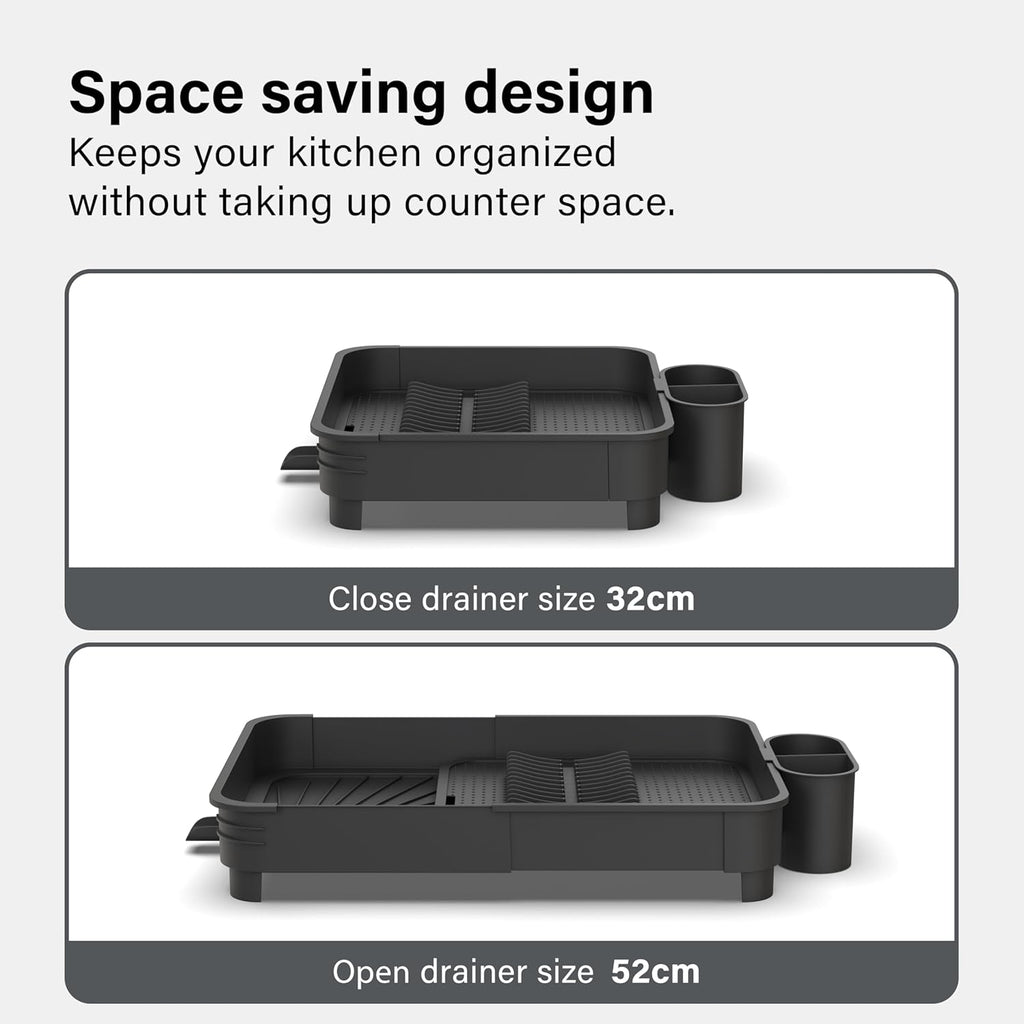 Extendable Dish Drainer Rack Foldable Dish Draining Rack with Removable Cutlery Holder Adjustable Dish Draining Board Rack with Swivel Drainage Spout Space-Saving Kitchen Drying Rack Anthracite
