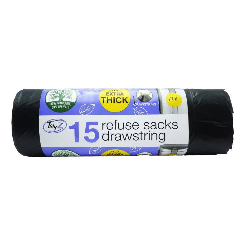 TidyZ Extra Thick Drawstring Refuse Sacks 15 x 70L