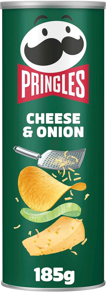 Pringles Cheese & Onion Sharing Crisps 185g, Best before 08/26, dented tube, may be crushed inside