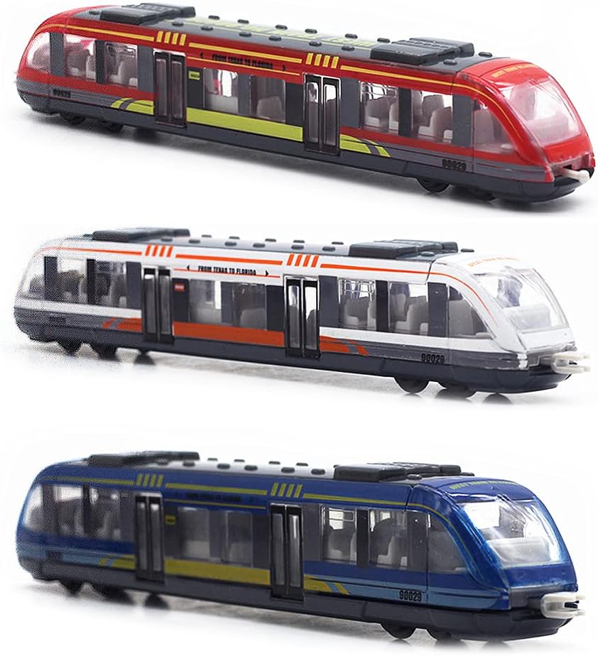 OTONOPI Toy Train Set High Speed Locomotive Engine Die Cast Model Car Sliding Linked Subway Bullet Train Set for Kids Pack of 3