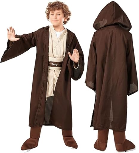 SINSEN Jedi Costume for Kids Jedi Tunic Hooded Robe Belt Lightsaber Top Pant Obi Wan Dress Up Outfit