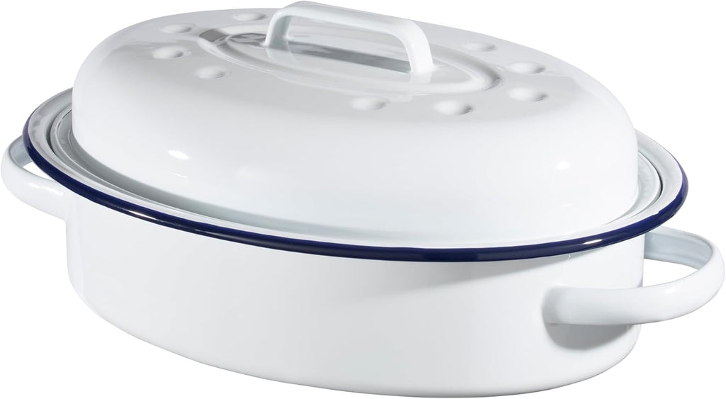 Hairy Bikers BKW1628 Enamelled Cookware, 4 Litre Casserole Dish, PFOA Free, Oven Safe, Dishwasher Safe, White